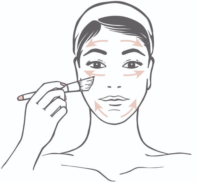 Applica al mattino con il pennello fondotinta Dolomia Make-up o con i polpastrelli dal centro verso le estremità del viso sfumando bene negli angoli. Adatto all’uso quotidiano.